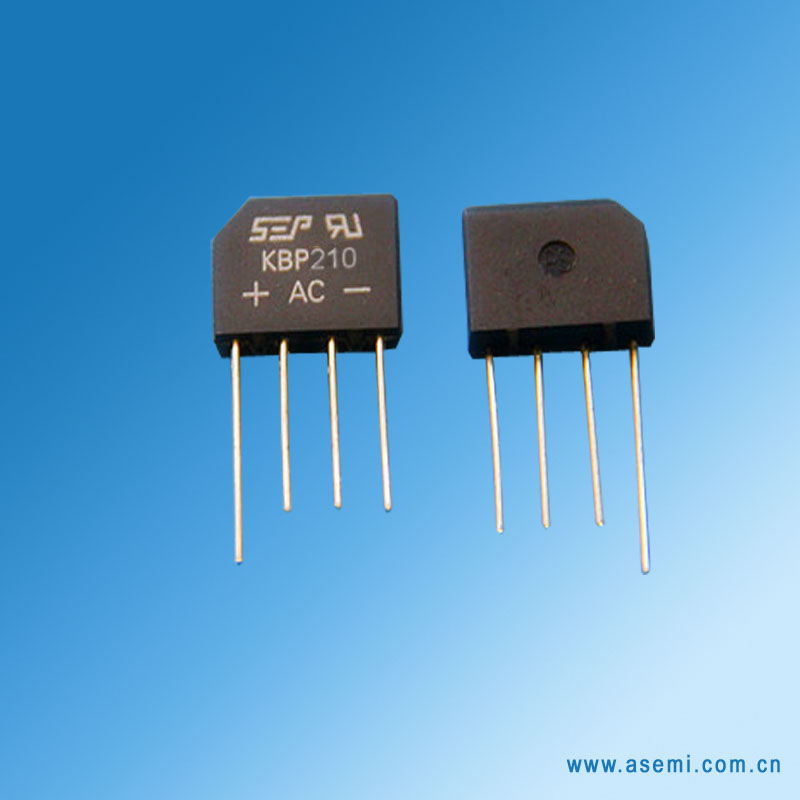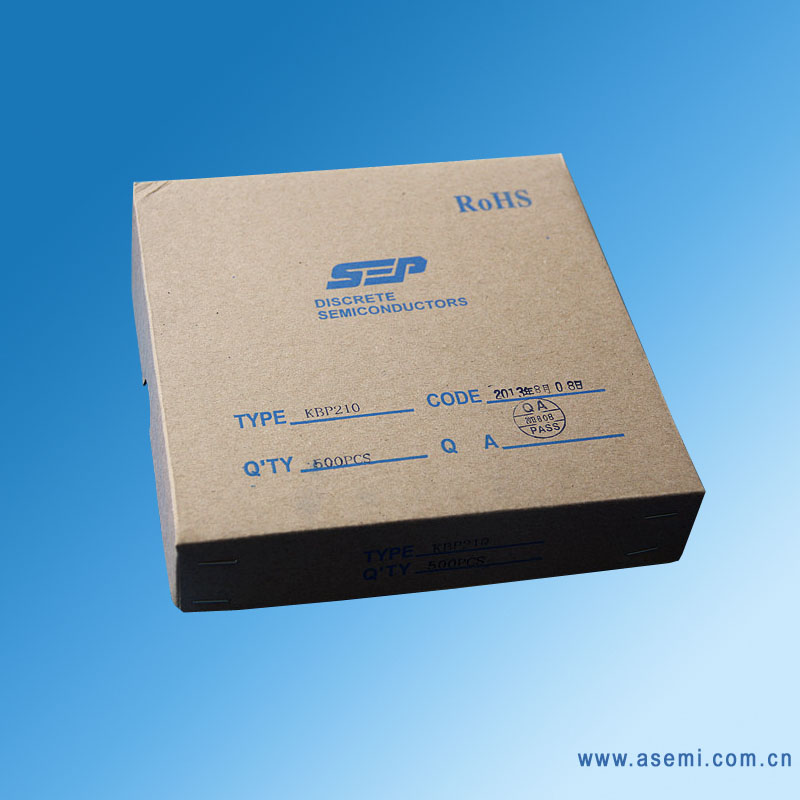 KBP210整流桥(封装 KBP-4 扁桥) 参数规格:电流:2A ;电压:1000V ;盒装:500PCS/盒;5K/箱。