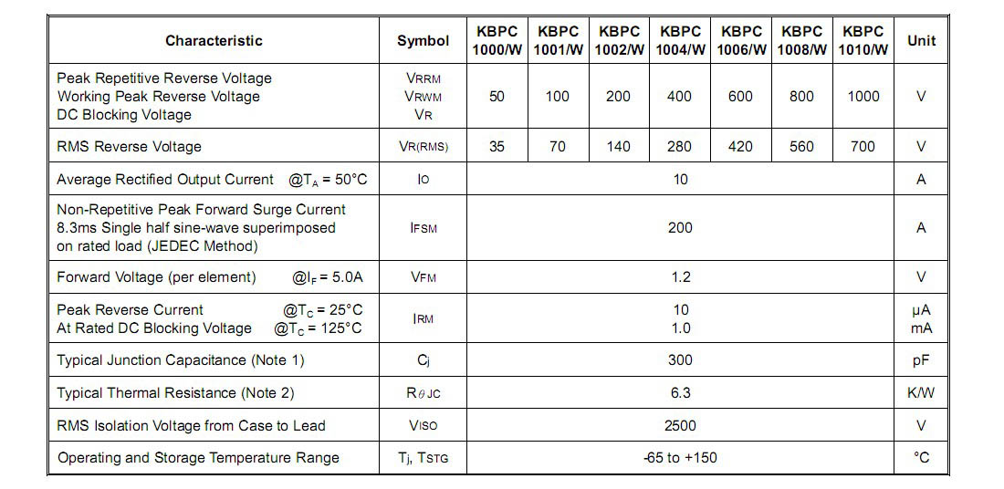 KBPC1010整流桥,,参数规格:电流:10A;电压:1000V;盒装:250PCS/盒。