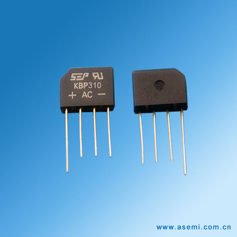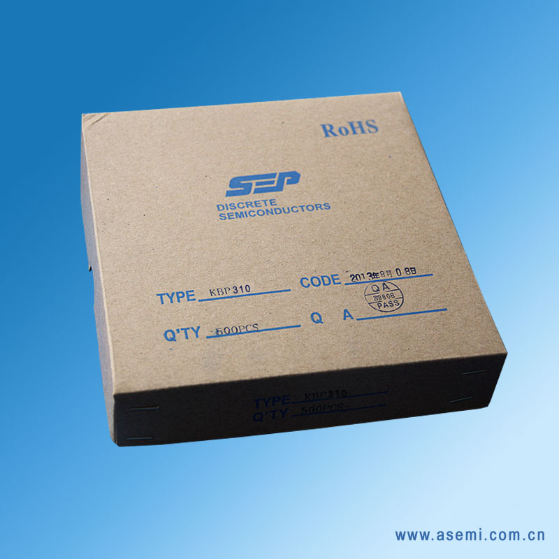 KBP310整流桥(封装 KBP-4 扁桥) 参数规格:电流:3A ;电压:1000V ;盒装:500PCS/盒;5K/箱。
