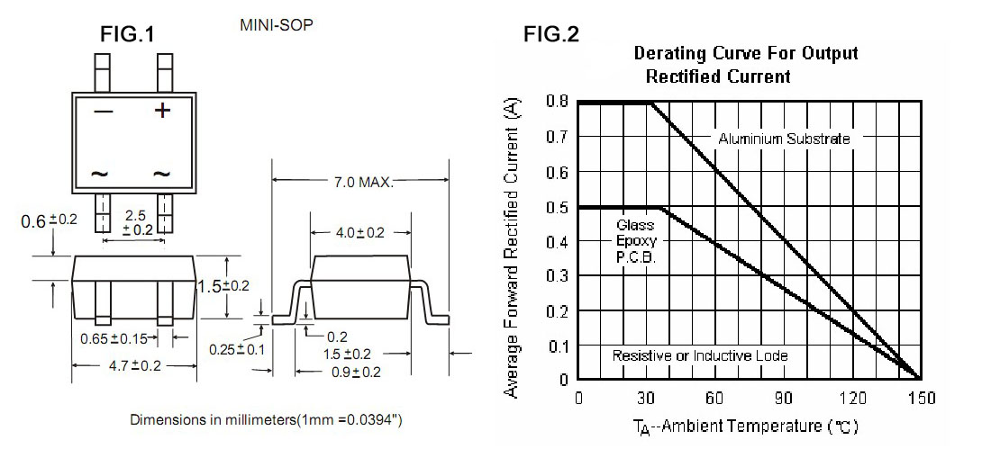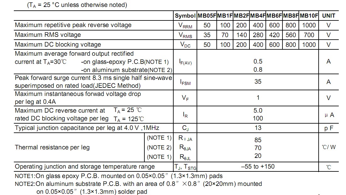 MB10F整流桥(封装 MBF-4 扁桥) 参数规格:电流:0.5A;电压:1000V ;盘装:3000PCS/盘;60K/箱。
