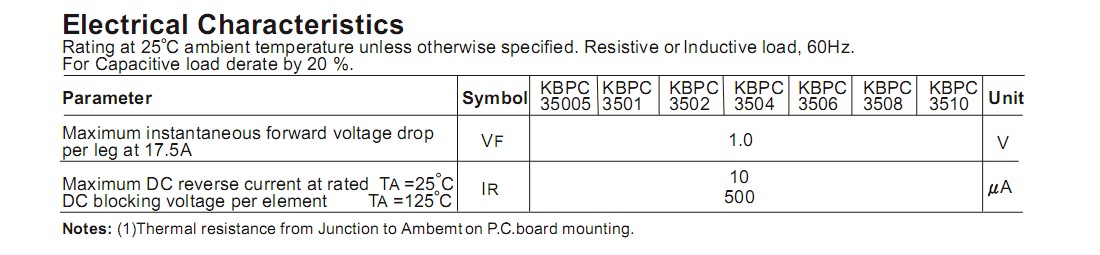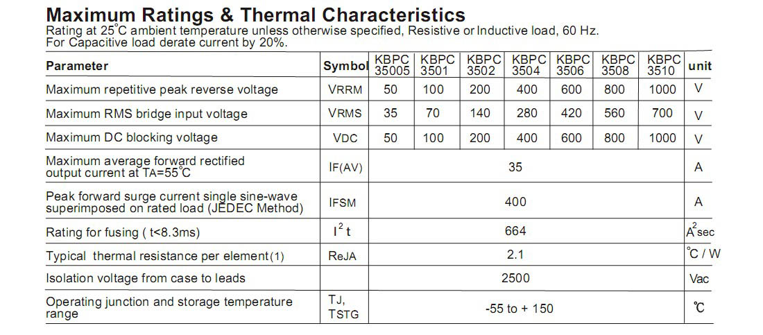 KBPC3506整流桥,参数规格:电流:35A;电压:600V;盒装:50PCS/盒。