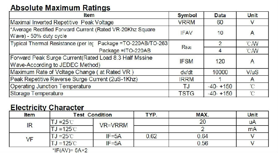 肖特基二极管MBR1060H管装:50/管;盒装:1000PCS/盒。