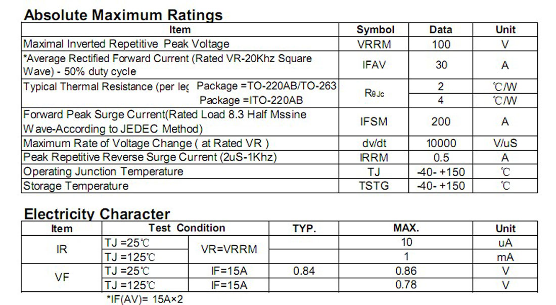 肖特基二极管MBR30100PT管装:30/管;盒装:360PCS/盒。