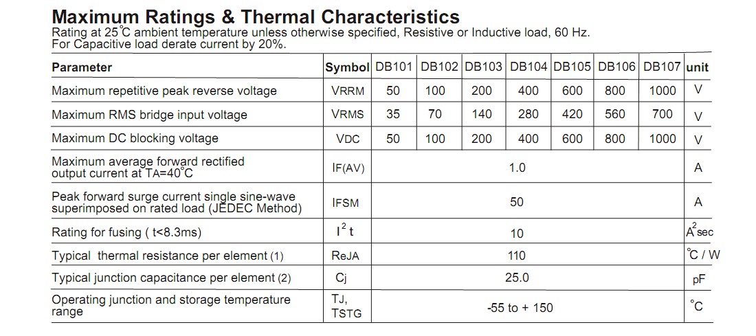 同系列相同型号:DB104S、DB107
