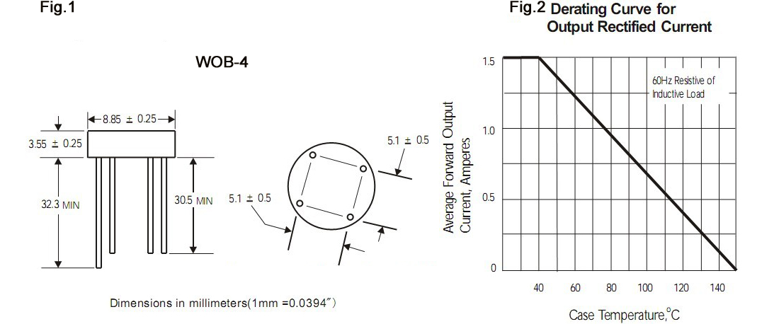 RB154整流桥(封装 WOB-4 圆桥) 参数规格:电流:1.5A ;电压:400V 盒装:1000PCS/盒