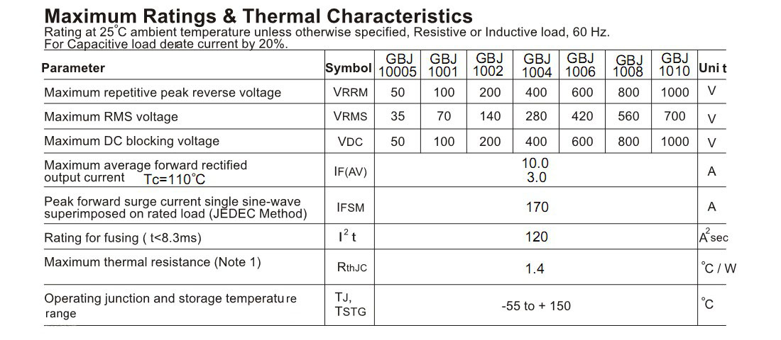 确保GBJ1010品质的高可靠性。400-9929-667