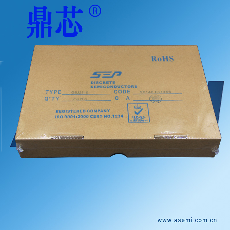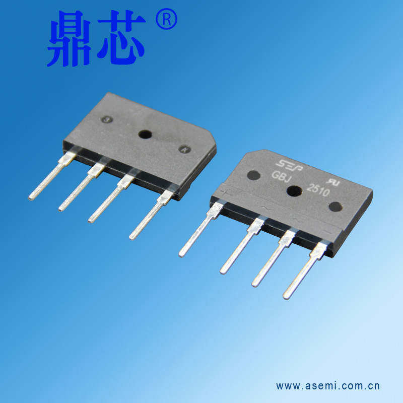 GBJ2510整流桥(封装 GBJ-4 扁桥) 参数规格:电流:25A ;电压:1000V ;包装方式:250PCS/盒,4K/箱。主要应用于小电流领域产品,