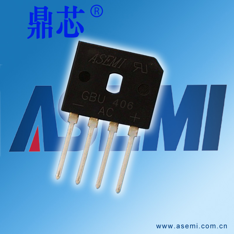 GBU406整流桥(封装 GBU-4 扁桥) 参数规格:电流:4A ;电压:600V ;包装方式:500PCS/盒,5K/箱。主要应用于小电流领域产品,小功率
